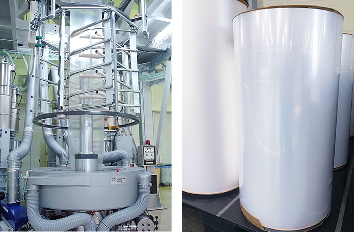仕⼊れたフィルムを加⼯するのが⼀般的な包装資材業界において、当社ではフィルムの製造から⾃社で対応できるノウハウと技術⼒がございます。