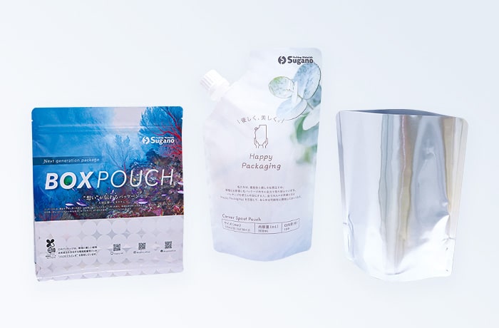 国内において製造できるメーカーの少ない“ボックスパウチ”や、厳しい品質管理が求められる“レトルトパウチ”や“スパウトパウチ”など、他社では製造の難しいパッケージも多数取り扱っております。