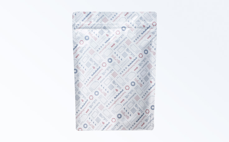 一体型スタンドチャックパウチは、自立性と再封性を兼ね備えた高い機能性を持つパウチです。粉末タイプの洗剤のパッケージとして多く使用されています。