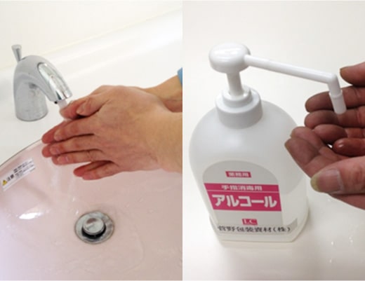手洗い、アルコール消毒