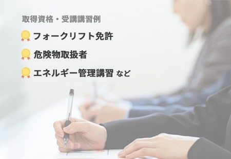 スキルアップを支援するため、業務に必要な資格の取得や、専門性を高める技能検定の受講など、外部研修に関する費用を全額会社で負担しています。